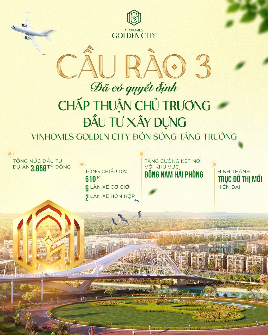 Đối với Vinhomes Golden City, công trình này được xem là cú hích quan trọng. Khi hạ tầng kết nối được hoàn thiện, khả năng tiếp cận khu vực trở nên thuận lợi hơn, kéo theo dòng cư dân, dòng vốn và hoạt động thương mại dịch chuyển về khu Nam Hải Phòng - yếu tố trực tiếp thúc đẩy giá trị bất động sản.